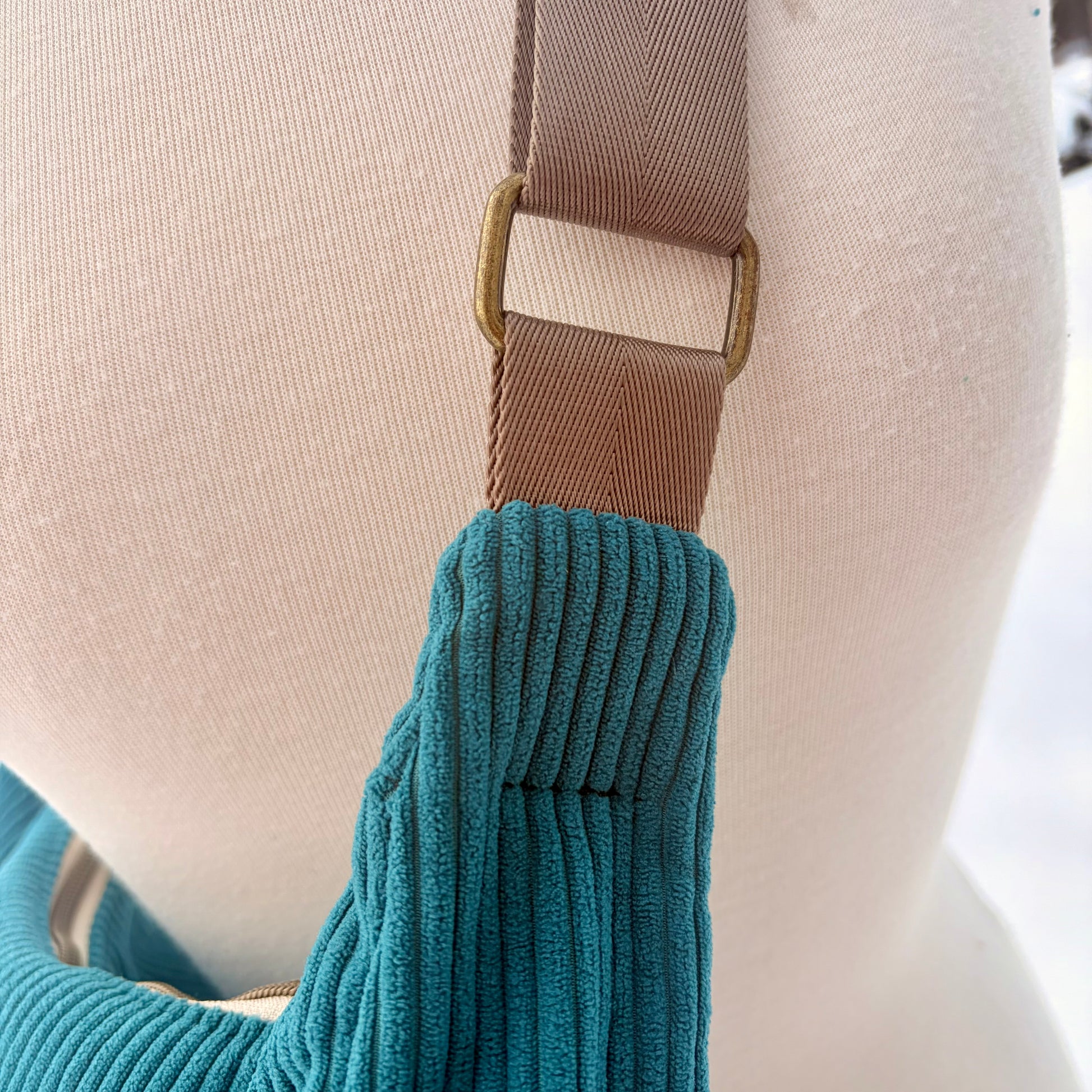 Le Charlevoix - Sac en demi-lune en corduroy uni bleu sarcelle